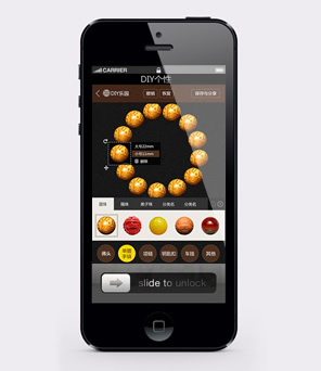 本产品可以让用户通过APP,将拍照得到的图片及系统预置的各种图片、产品配件等叠加拼合并进行效果处理、从而DIY合成出各种主题图片,如手串等产品diy设计图、家居设计图、人物搞笑头像等等,从而让商家定制设计并可分享至朋友圈。同时,后续用户购买页面会显示出所有配件的信息。